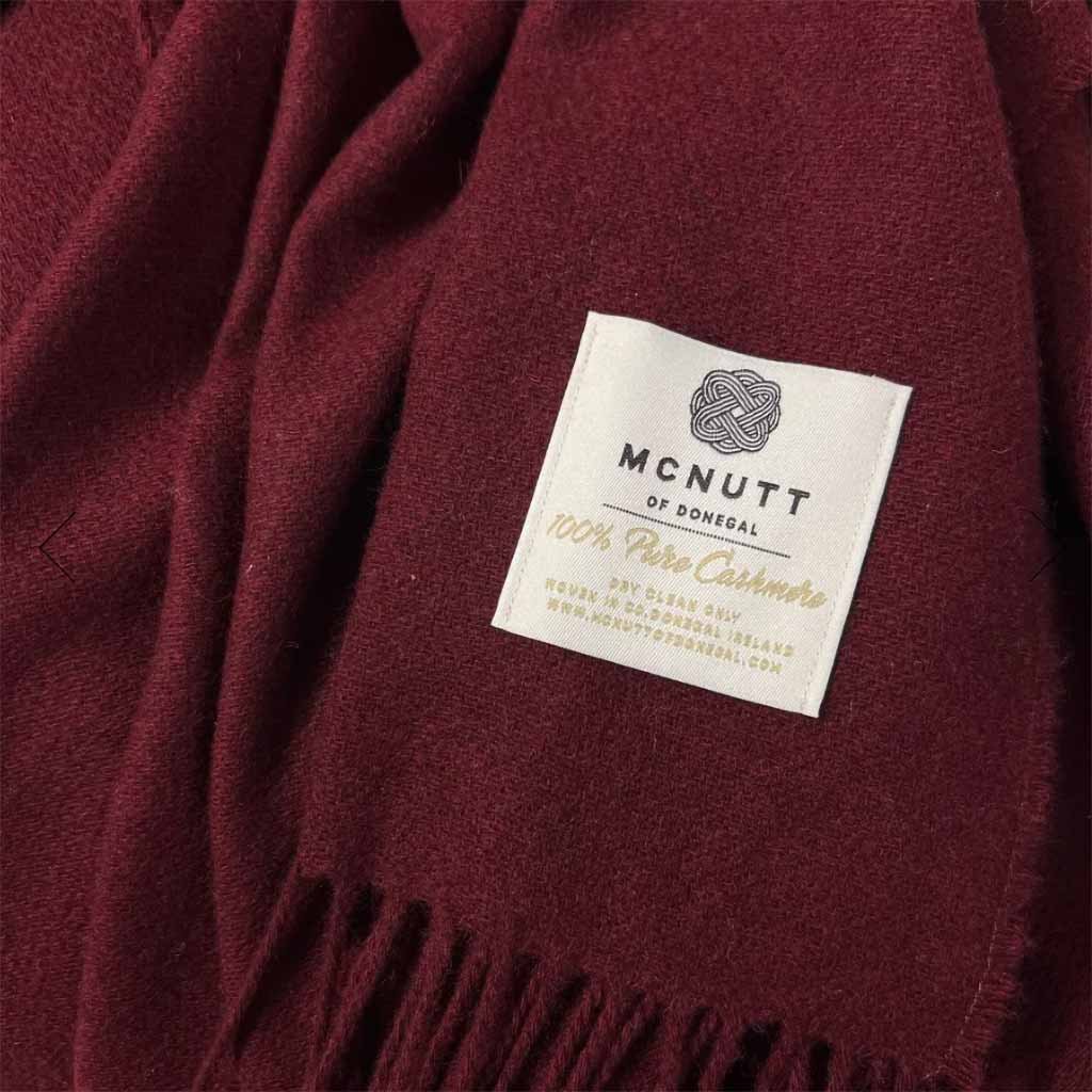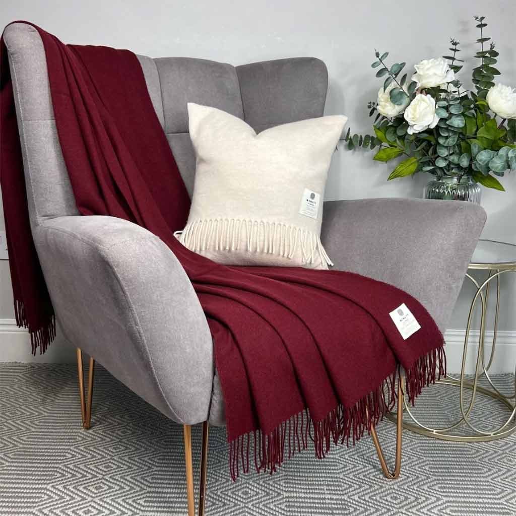 100 % kašmírový pléd z Írska – bordový luxus na gauč aj posteľ