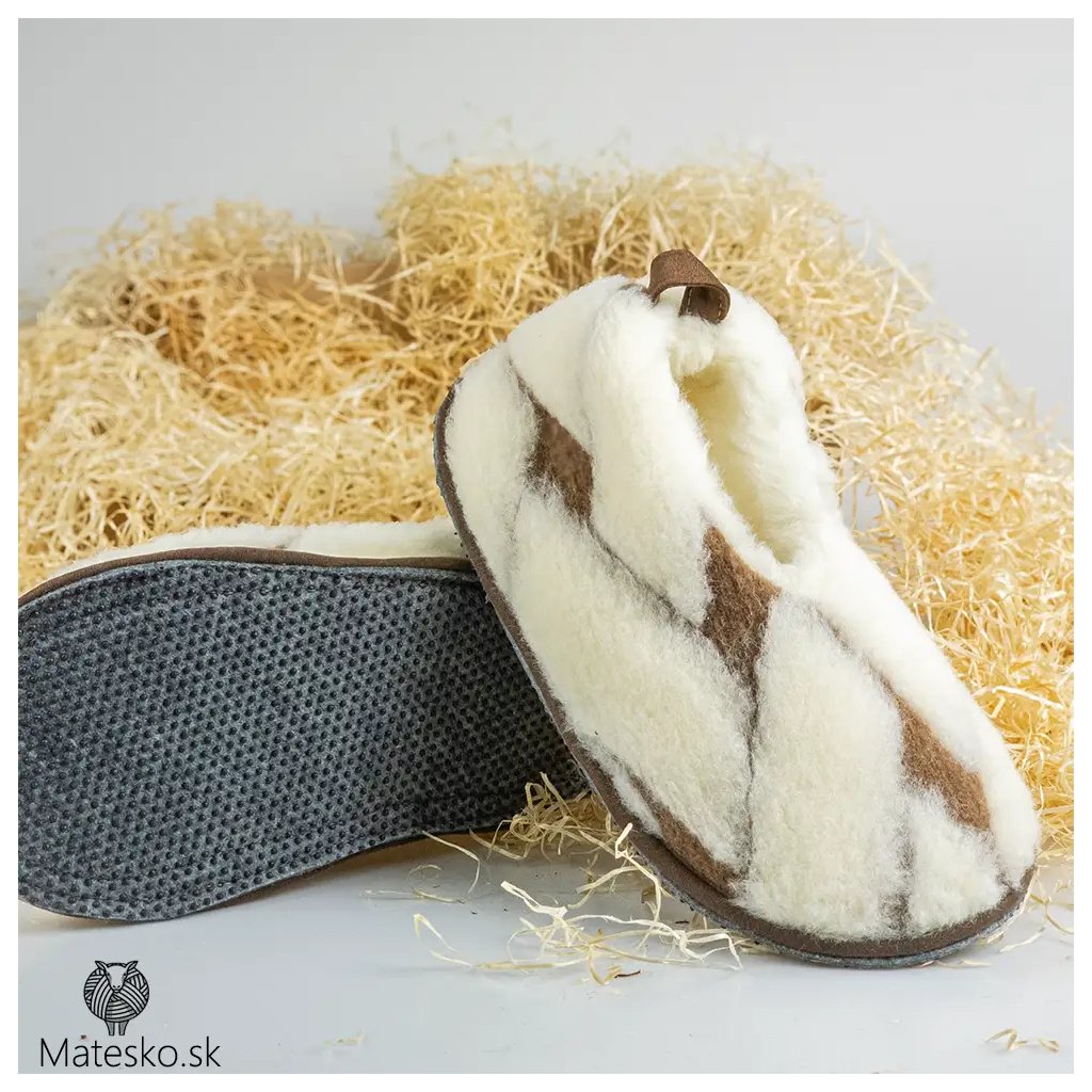 Luxusné členkové papuče - 90% Merino Super fine vlna + 10% kašmír Zažite jedinečný komfort a dokonalú hrejivosť s našimi kašmírovými papučami, ktoré vyrábame priamo na Slovensku v našej krajčírskej dielni. Každý pár je starostlivo strihaný a šitý s dôrazom na každý detail, aby vám priniesol pocit luxusu a maximálneho pohodlia. Tieto papuče sú ideálnym spoločníkom na chladné zimné večery, pričom spojenie prémiovej merino vlny a kašmíru zaručuje unikátnu mäkkosť a teplotnú reguláciu, na ktorú sa môžete spoľahnúť. Výhody našich kašmírových papúč: Prírodné materiály najvyššej kvality – Zloženie je až 90% merino superfine vlna a 10% kašmír, čo dodáva papučiam luxusnú mäkkosť a teplo. Perfektná izolácia – Vlna prirodzene udržiava teplo a zabraňuje jeho úniku, takže vás papuče udržia v teple aj na studenej podlahe. Antibakteriálne a bez zápachu – Merino vlna má prirodzené antibakteriálne vlastnosti a odvádza vlhkosť, čo znižuje zápach a udržiava papuče svieže. Elegantný 3D záplet– Hnedá s prírodnou farbou v 3D záplete dodáva papučiam nadčasový štýl a jednoducho sa kombinuje s každým domácim outfitom. Ručná výroba na Slovensku – Sme hrdí, že každý pár papúč vyrábame s láskou a precíznosťou priamo v našej rodinnej dielni, kde tradícia a remeslo majú svoje pevné miesto. Úsporný nákup priamo od výrobcu – vďaka tomu máte najvyššiu kvalitu za výhodnú cenu Prečo si vybrať naše kašmírové papuče? Naše papuče sú ideálne pre tých, ktorí ocenia kvalitu, pohodlie a luxus. Sú vhodné pre zákazníkov, ktorí majú radi teplo a preferujú prírodné materiály, ktoré regulujú teplotu a prispievajú k ich celkovej pohode doma. Vďaka antibakteriálnym vlastnostiam merino vlny sa papuče jednoducho udržujú v čistote a príjemne svieže, aj pri pravidelnom nosení. Tento kúsok je viac ako len obuv na doma – je to skutočný darček pre vaše nohy. Dokonalé pohodlie so všitým molitanom Papuče majú vo vnútri šlapy pod vlnou všitý 2 cm čalúnický molitan, ktorý zaisťuje ešte väčší komfort a izolačné schopnosti. Tento extra vrstvený materiál nielen zvyšuje teplotnú izoláciu, ale aj zabezpečuje, aby boli papuče mäkké a pohodlné na každodenné nosenie. Môžete sa spoľahnúť, že vás príjemne ochránia pred chladom a studenou podlahou. Vlastnosti a funkčnosť merino vlny a kašmíru: Regulácia teploty – Merino vlna spolu s kašmírom udržuje stabilnú teplotu, takže vám v papučiach nikdy nebude príliš teplo ani zima. Antialergické a jemné na dotyk – Merino a kašmír sú hypoalergénne materiály, ktoré nedráždia pokožku, takže sú vhodné aj pre citlivé nohy. Priedušnosť – Vlna dokáže efektívne odvádzať vlhkosť, čím sa zabraňuje poteniu a udržiava optimálnu klímu pre vaše chodidlá. Starostlivosť o papučePre dlhodobé zachovanie kvality odporúčame papuče nechať pravidelne vetraním na čerstvom vzduchu a prípadné nečistoty čistiť jemnou kefou alebo vlhkou handričkou. Neprať v práčke ani nevystavovať vysokým teplotám – prírodné vlákna si tak zachovajú svoju jemnosť a funkčnosť. Kúpte si tento luxusný doplnok a doprajte si pohodlie, aké si vaše nohy zaslúžia!Doplňkové parametry