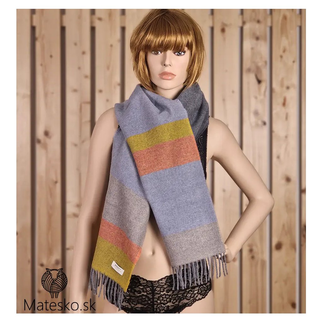 Luxusný vlnený šál s farebnými pruhmi Dámsky šál zo 100% merino vlny – moderný a pohodlný