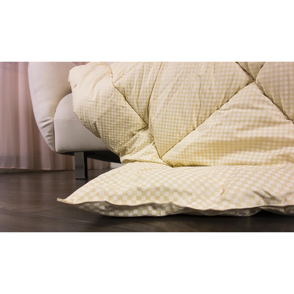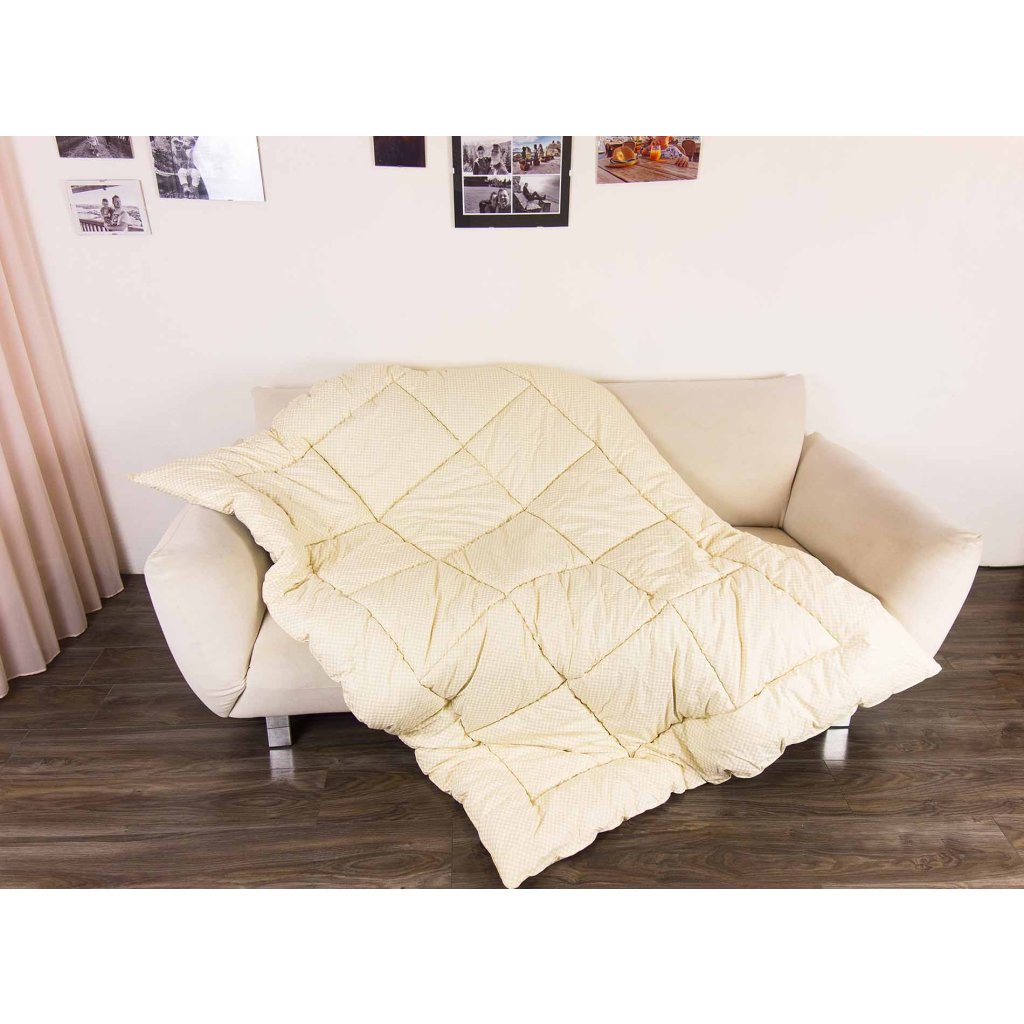 - Výplň: 100 % čistá ovčia vlna (cca 2 300 g na rozmer 140 × 200 cm)