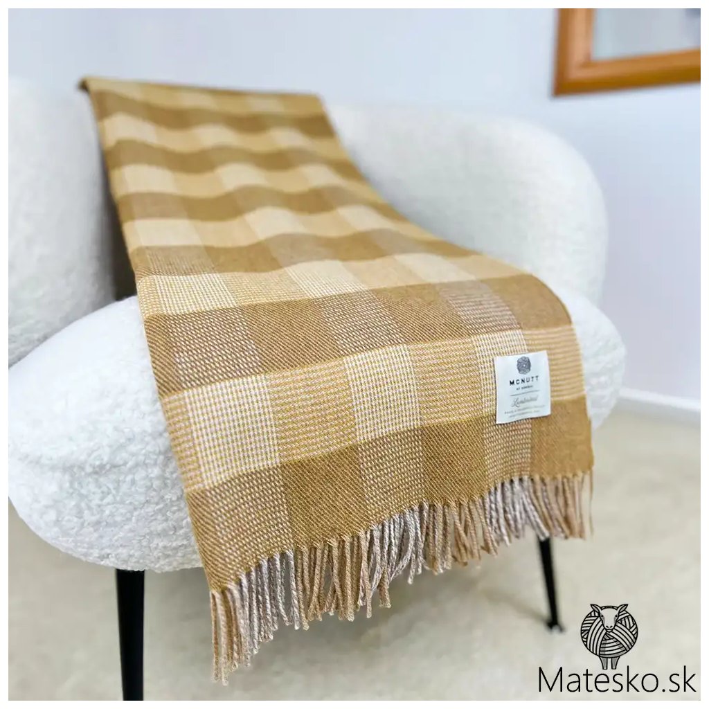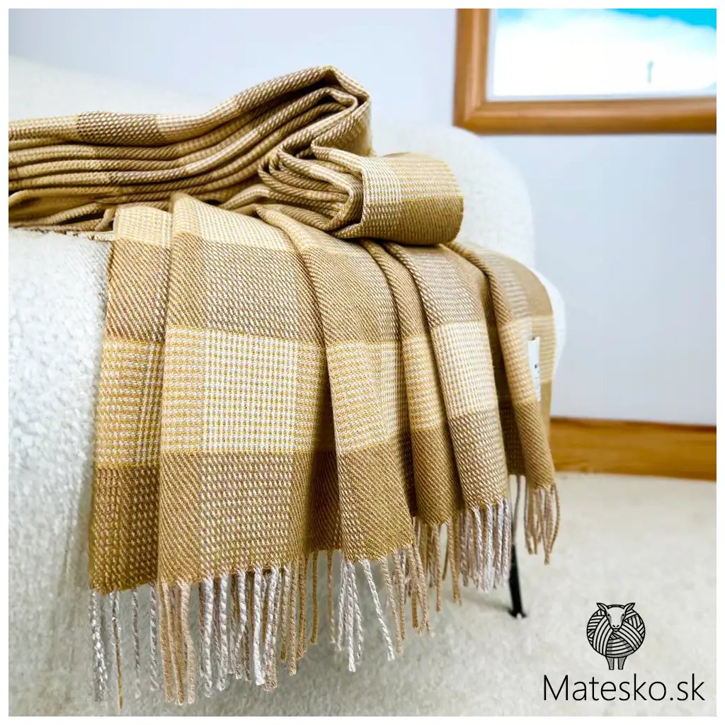 Pléd z jahňacej vlny merino Kockovaný vzor v béžovej a hnedej