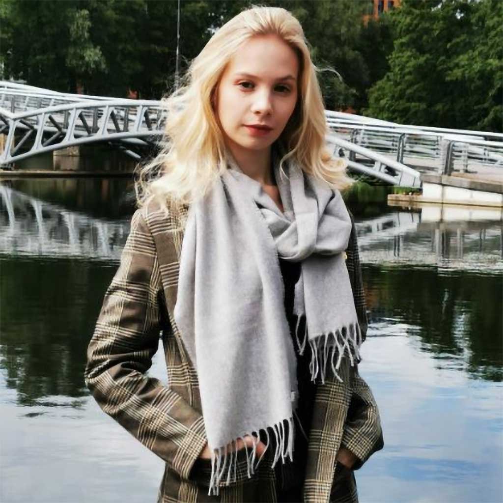 Šál z 100 % kašmíru v odtieni sivá (dove grey) pôsobí čisto a profesionálne. Je ľahký, no hrejivý, priedušný a stabilný pri každodennom nosení. Sivá dodá outfitu istotu bez toho, aby kričala – funguje s tmavým kabátom, svetlým sakom aj s denimovou modrou.