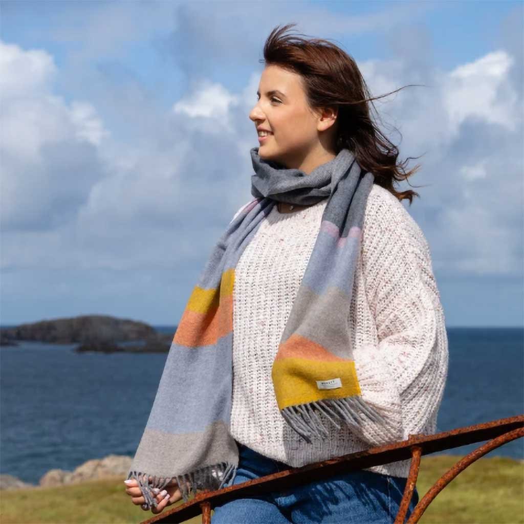 Luxusný vlnený šál s farebnými pruhmi Dámsky šál zo 100% merino vlny – moderný a pohodlný